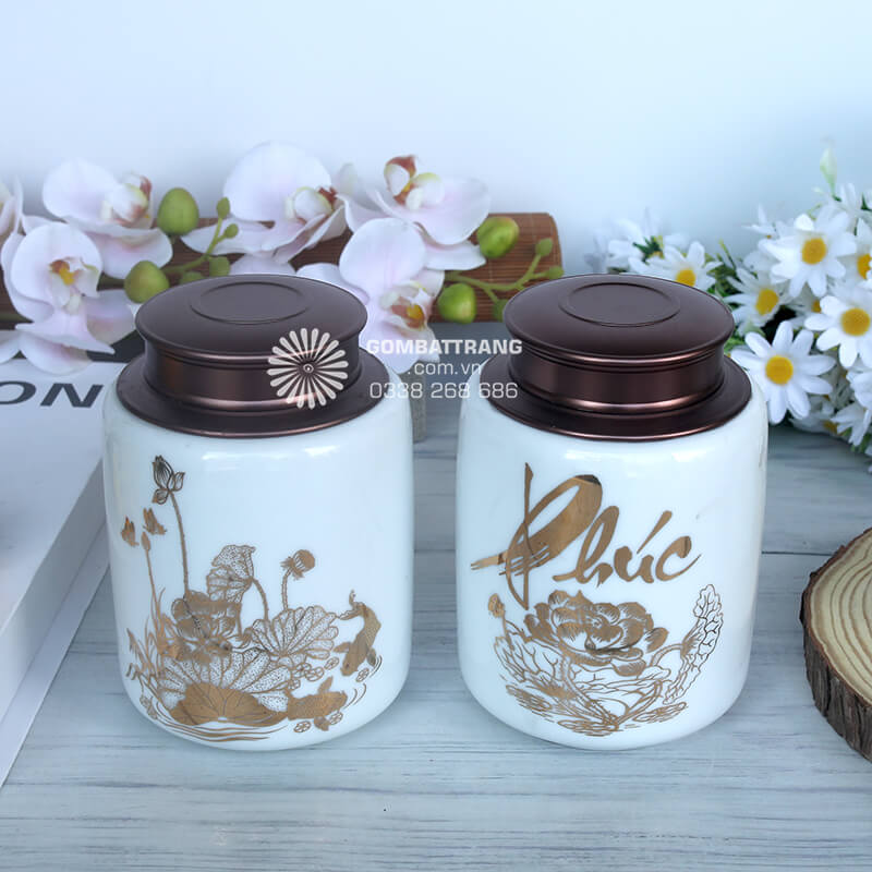 Lọ đựng trà hoa sen không chỉ đơn thuần là vật dụng mà còn là tác phẩm nghệ thuật thủ công tinh xảo. Mỗi họa tiết hoa sen, từng nét chữ Phúc đều được vẽ tay hoặc in chuyển nhiệt công nghệ cao, tạo nên sự sắc nét và bền màu theo thời gian. Sản phẩm phù hợp với những ai yêu thích phong cách truyền thống, trân trọng nét đẹp văn hóa Việt.Lọ đựng trà