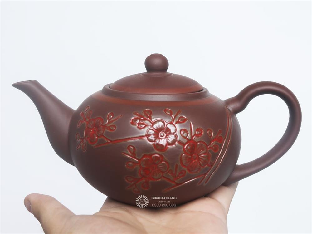 Mua ấm trà tử sa khắc hoa đào chính hãng