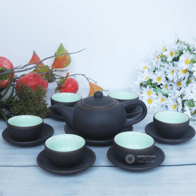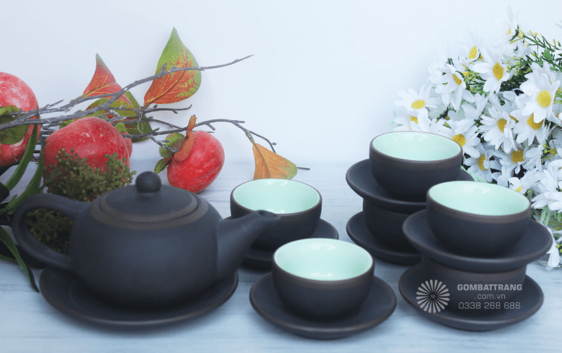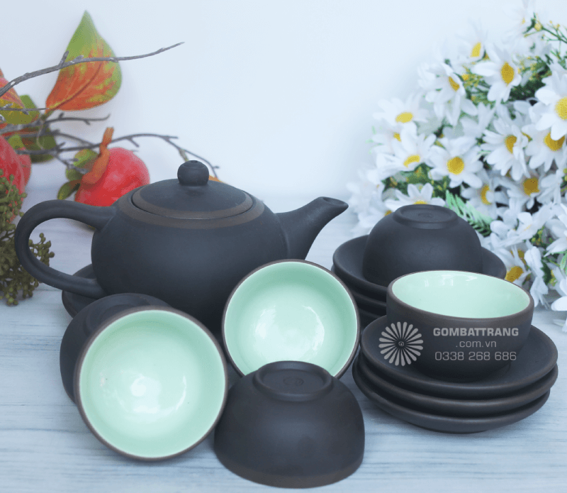 Bộ ấm chén tử sa Bát Tràng được tráng men từ những nguyên liệu hoàn toàn tự nhiên giúp ấm chén có mầu sắc tươi mới mịn màng nhưng đanh chắc