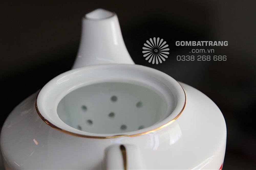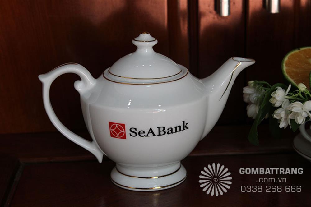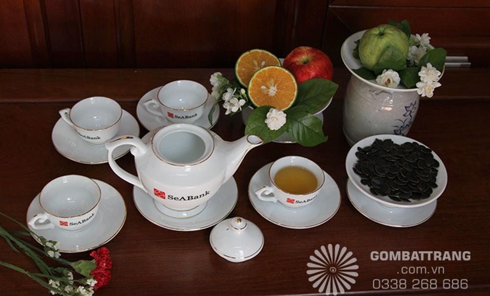 Ấm chén in logo men trắng đẹp, sứ sạch an toàn cho người sử dụng