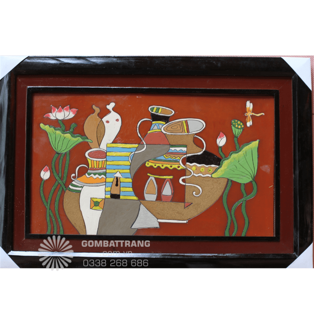 Tranh gốm nghệ thuật trừu tượng hoa sen và bình cổ