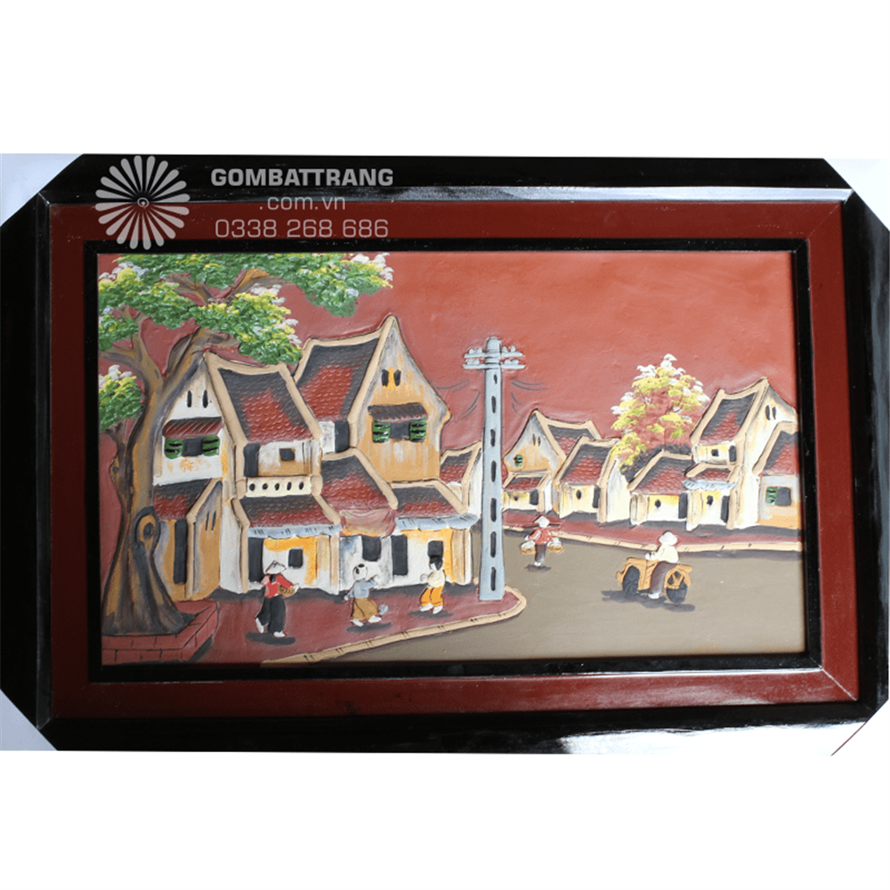 Tranh gốm sứ bát tràng luôn được xem là niềm tự hào của làng nghề Bát Tràng với lịch sử hàng trăm năm. Bức tranh tái hiện phố cổ Hà Nội xưa, với những mái ngói rêu phong, con đường lát gạch và hình ảnh người dân giản dị. Từng chi tiết nhỏ trong tranh gốm sứ bát tràng đều được nghệ nhân chạm khắc tỉ mỉ, mang đến giá trị thẩm mỹ lâu bền.